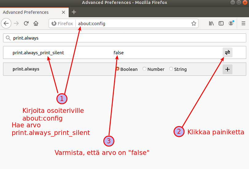 Voit vastaavasti laittaa automaattisen tulostuksen päälle vaihtamalla print.always_print_silent arvoksi ”true”